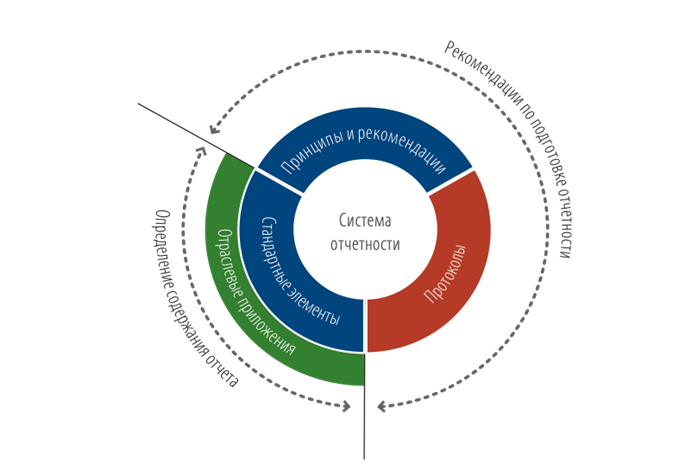 «Независимая международная организация GRI разрабатывает глобальные стандарты отчетности в области устойчивого развития, которые, будучи добровольными, ориентированы на участие многих заинтересованных сторон и представляются как набор модульных взаимосвязанных стандартов. Свод этих стандартов охватывает как общие, универсальные темы, так и конкретные области, связанные с экологическими, социальными и управленческими вопросами; к тому же стандарты регулярно обновляются и дополняются» [1].