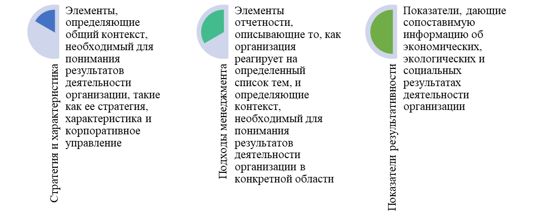 Рис. 2. Стандартные элементы отчетности GRI [составлено авторами по материалам [5]]