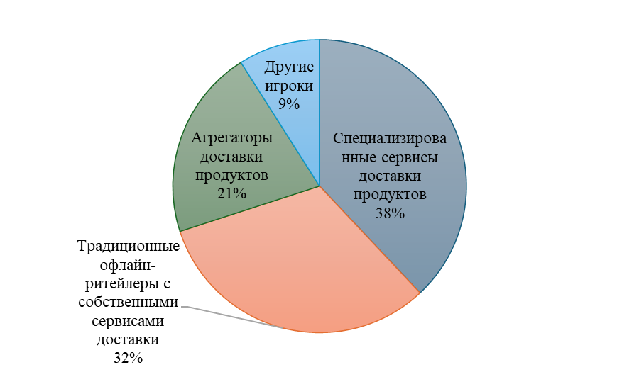 Рассмотрим структуру рынка онлайн-продаж продуктов питания по типам игроков (рисунок 3).