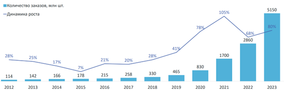 Рис. 3. Динамика заказов за период с 2012 по 2023 года