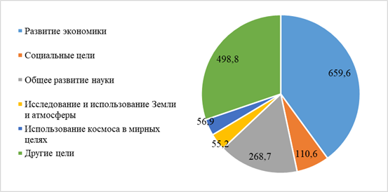 Как уже было отмечено ранее, на фоне стабильно высокого спроса на невозобновляемые источники энергии, повсеместный переход к альтернативным невозможен. При этом, большая часть развитых стран мира стремится к снижению парникового эффекта и переходу к низкоуглеродной энергии, в том числе путем международной интеграции и внедрению высоких технологий. На Рисунке 2 представлена диаграмма, демонстрирующая объем внутренних затрат на исследования и разработки в России в 2023 году.